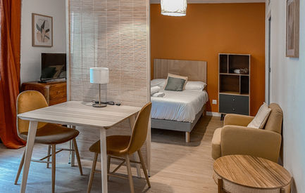 Chaque habitant dispose d’un espace privé d’environ 28m2, comprenant un espace jour, un espace nuit et une salle de bain privative avec WC.